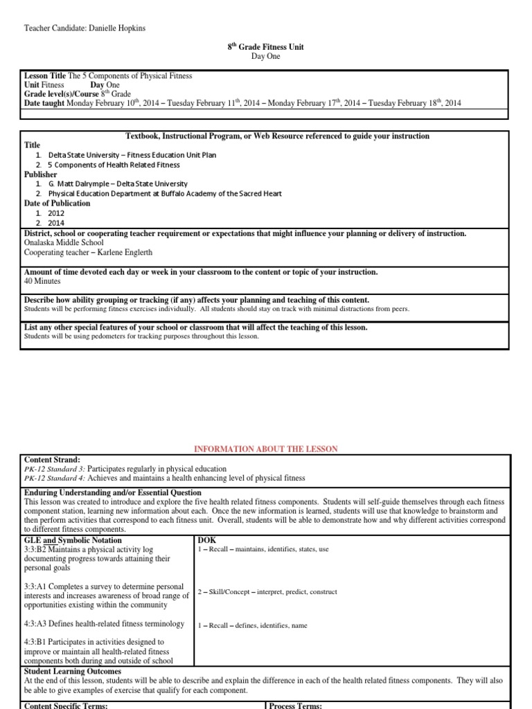 Fitness Lesson One Pdf Physical Fitness Physical Education